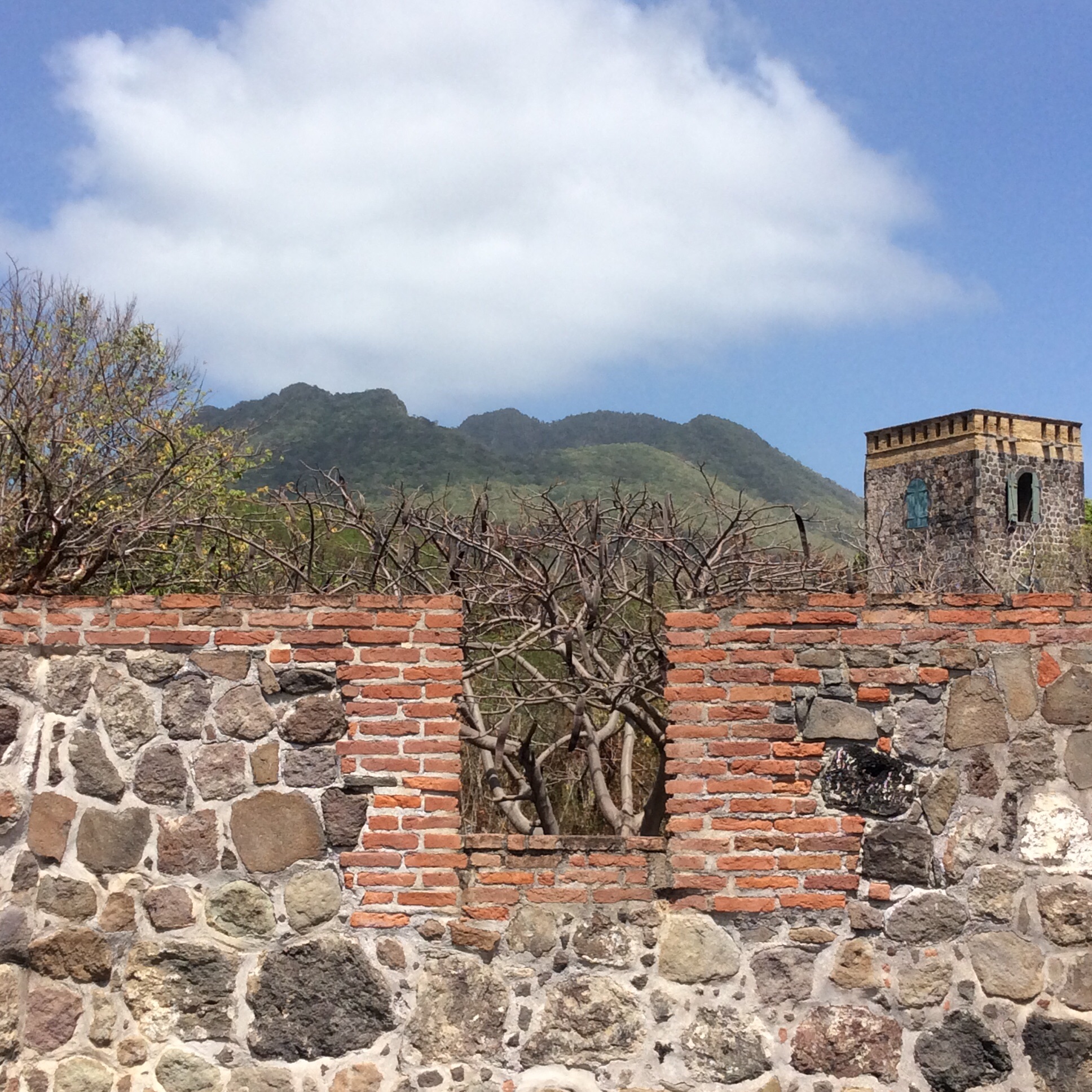 Fort Oranje, view towards The Quill volcano